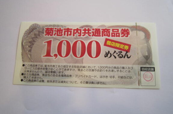 令和7年10月31日(金)迄使える菊池市「めぐるん券」赤券。ご利用出来ます。